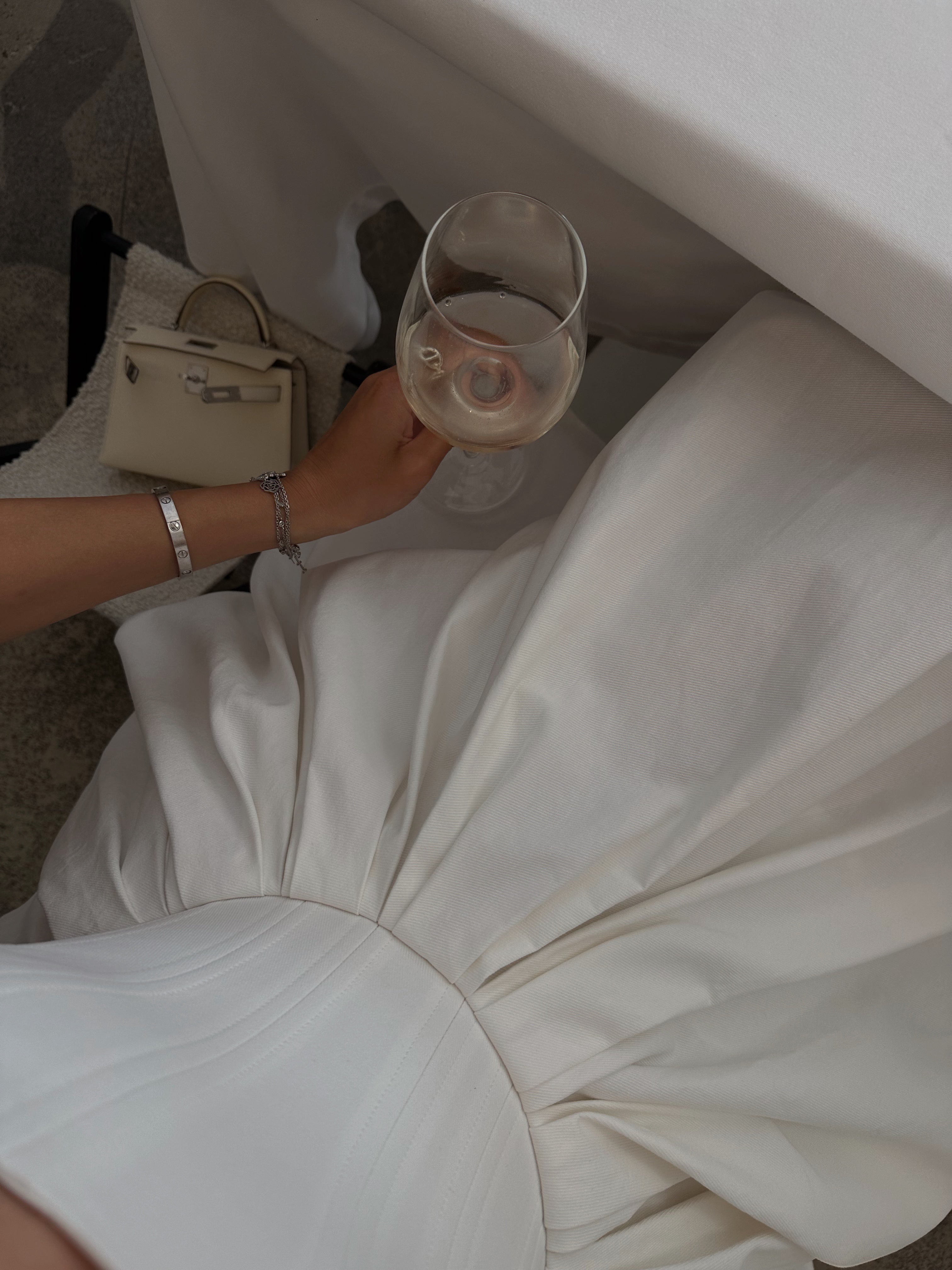 Introducing "Anna" Ballet-Inspired Corset Cut Dress - a stunning creation that brings together the grace of ballet and the charm of a corset cut design. Crafted with care, this dress is made of soft cotton, featuring numerous folds that exude fragility and elegance. Embrace the spirit of ballet in this exquisite piece, perfect for any special occasion or evening affair.