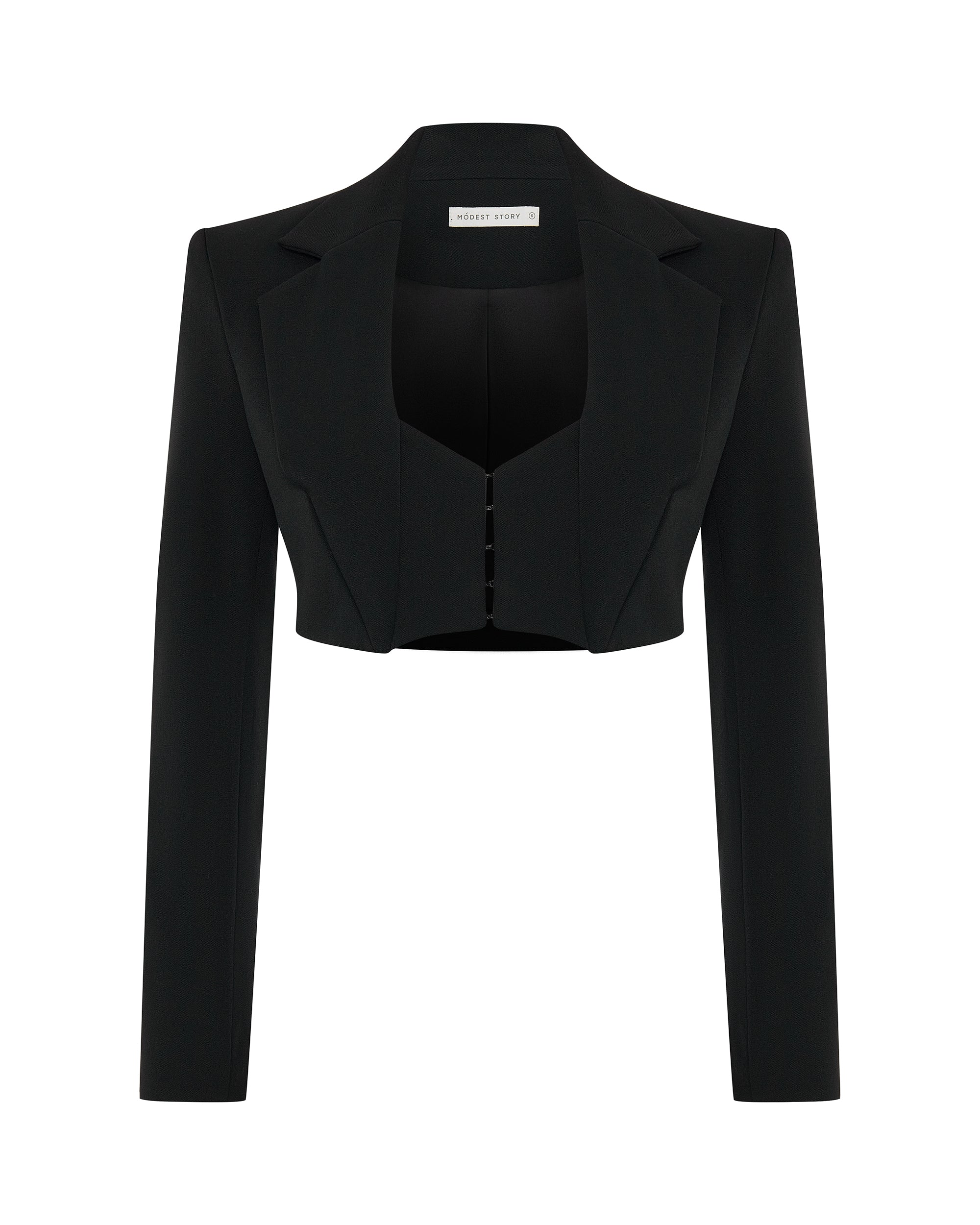 The classic crop jacket: a timeless essential with a tailored silhouette that accentuates the waist. From vintage elegance to modern chic, its versatility knows no bounds. Pair with high-waisted trousers for a timeless look. A must-have fashion icon for every wardrobe.