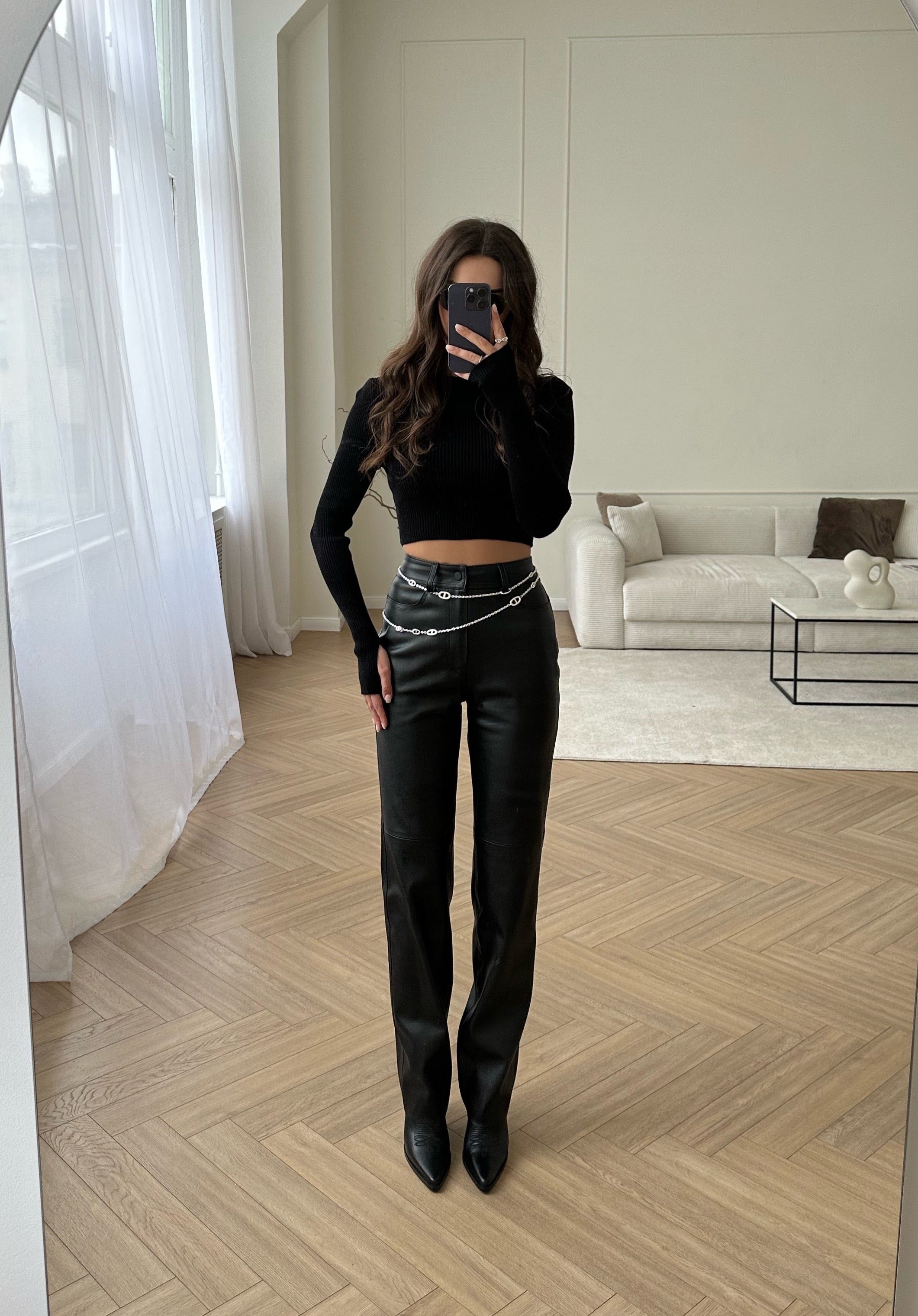 This crop top is made from luxurious Italian viscose that feels incredibly soft against your skin. The ribbed texture adds subtle visual interest, while the thumb hole detail offers a unique and stylish touch.