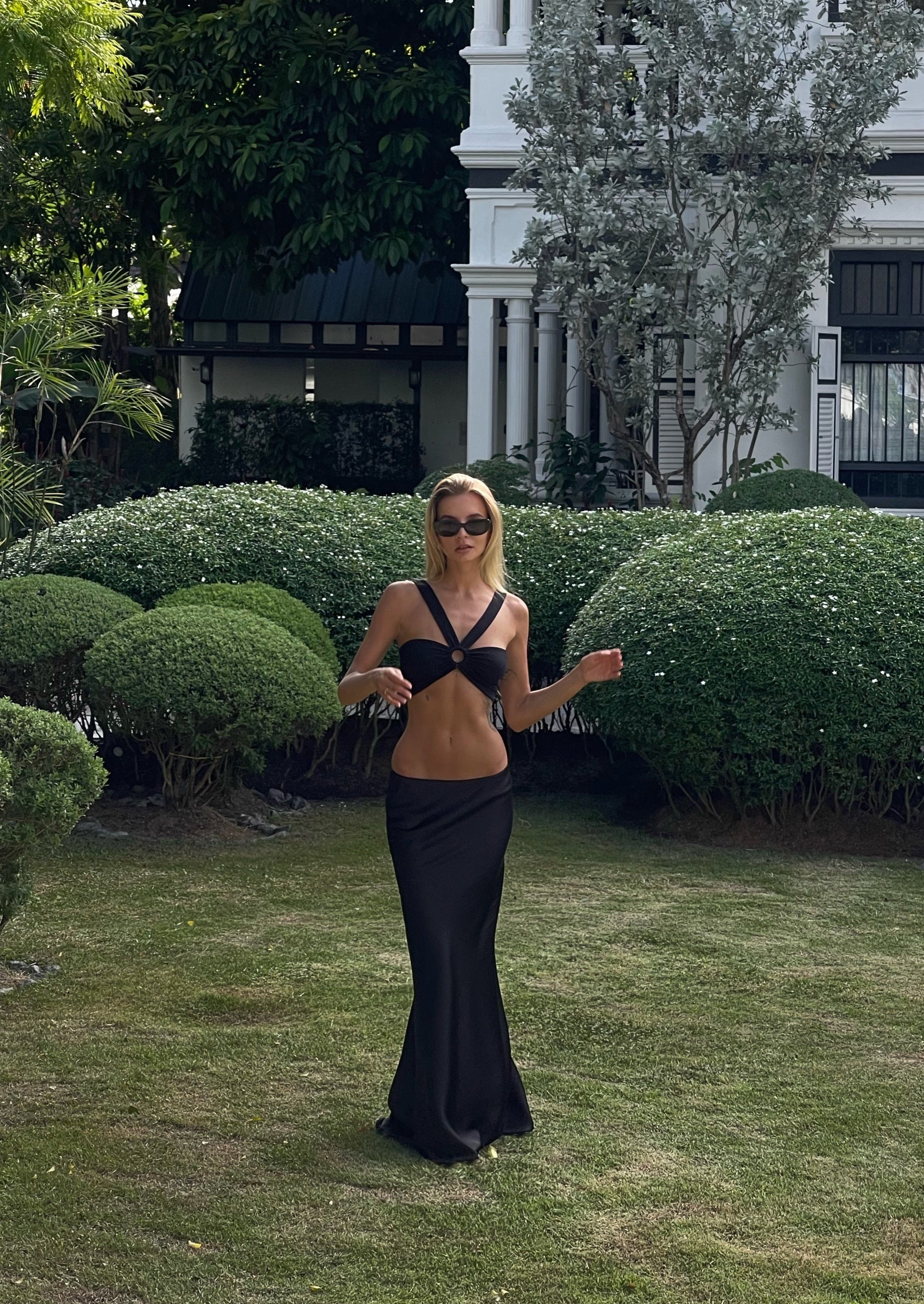 The Emma top is a tantalizing garment that exudes sensuality and allure. With a captivating ring embellishment adorning the front, it effortlessly combines style and sophistication, making it the perfect choice for those who appreciate fashion-forward, statement pieces.