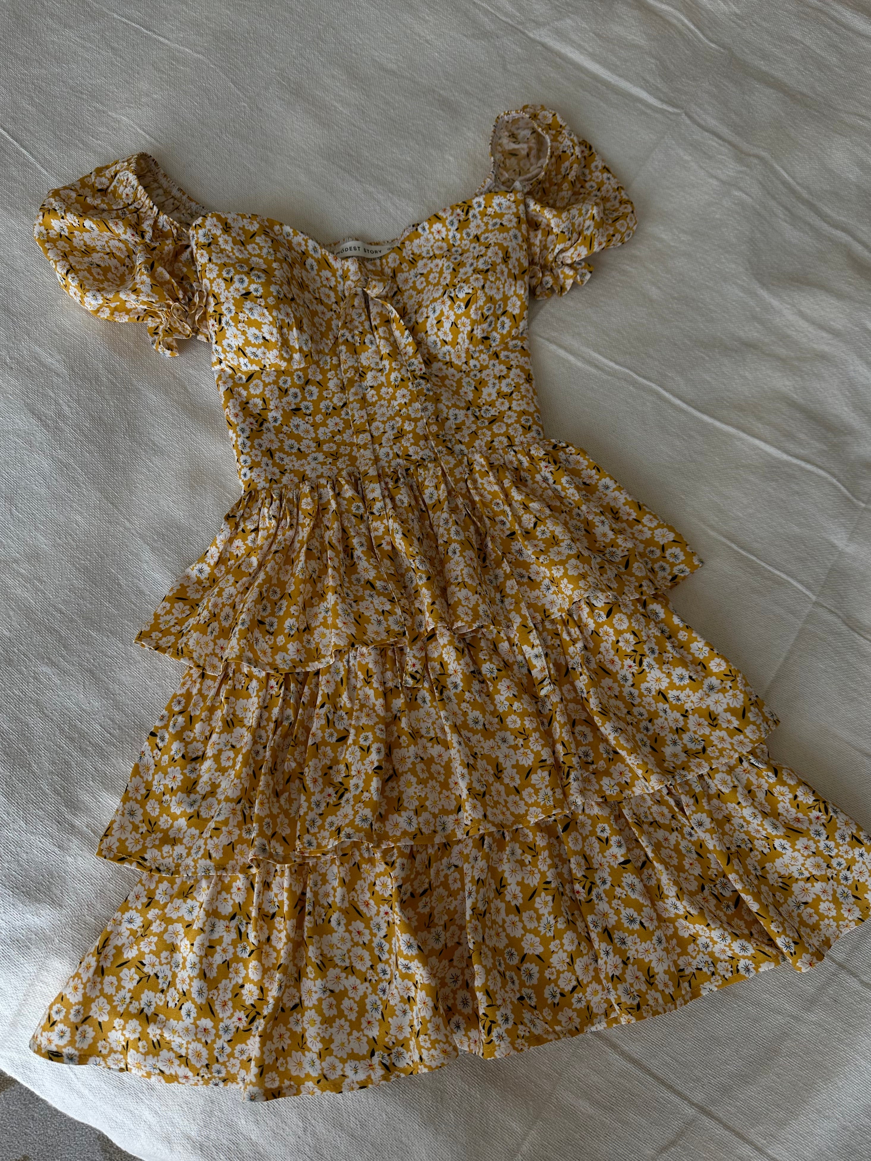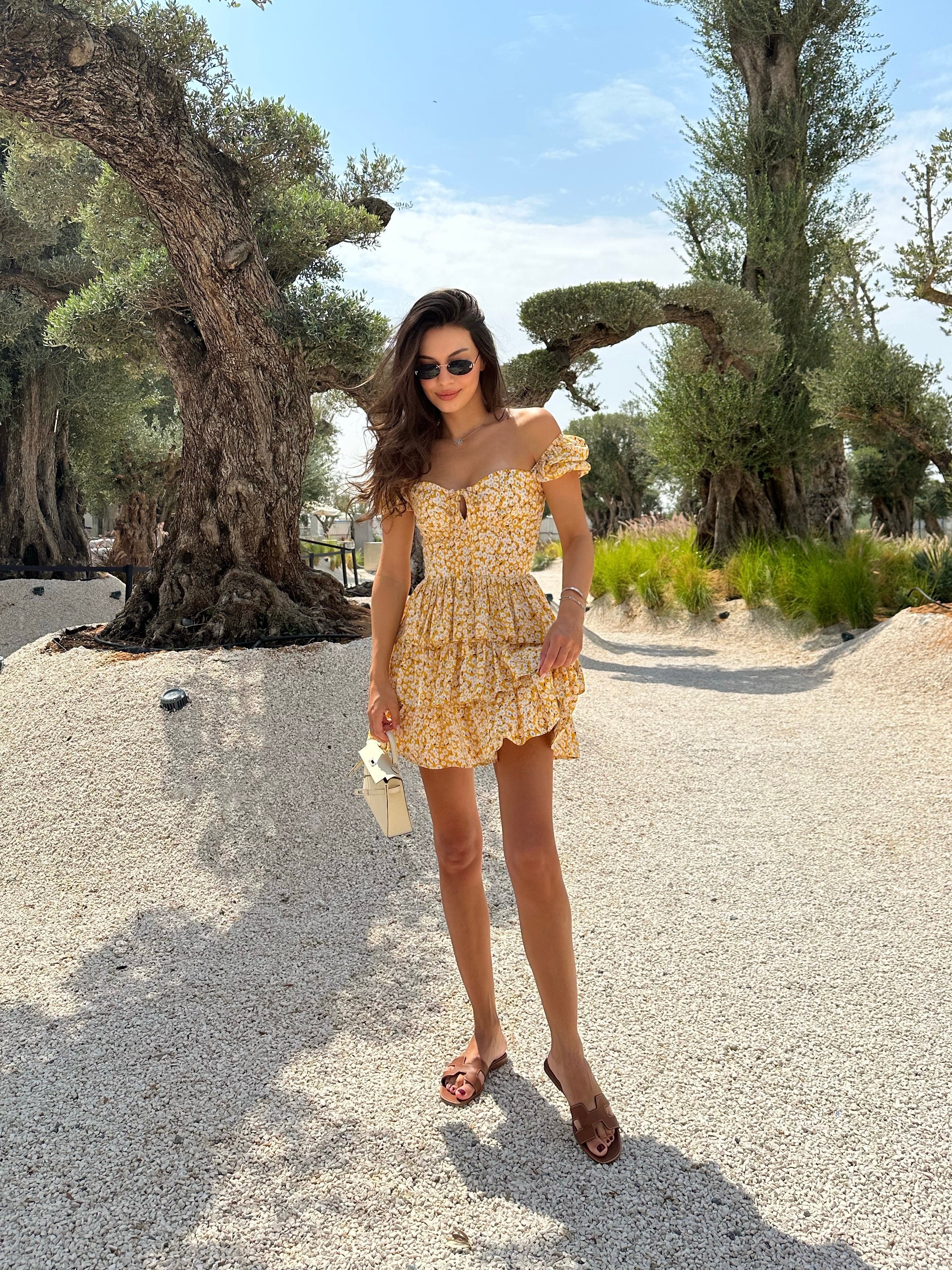 Kiki dress is crafted from a delicate and breathable fabric known as viscose, which offers a comfortable and airy feel against the skin. With its corset cut design, this dress is tailored to accentuate your figure, bringing out your best features. The multi-layered skirt further adds to the dress's ethereal charm, creating a light and graceful appearance that exudes a sense of effortless elegance.