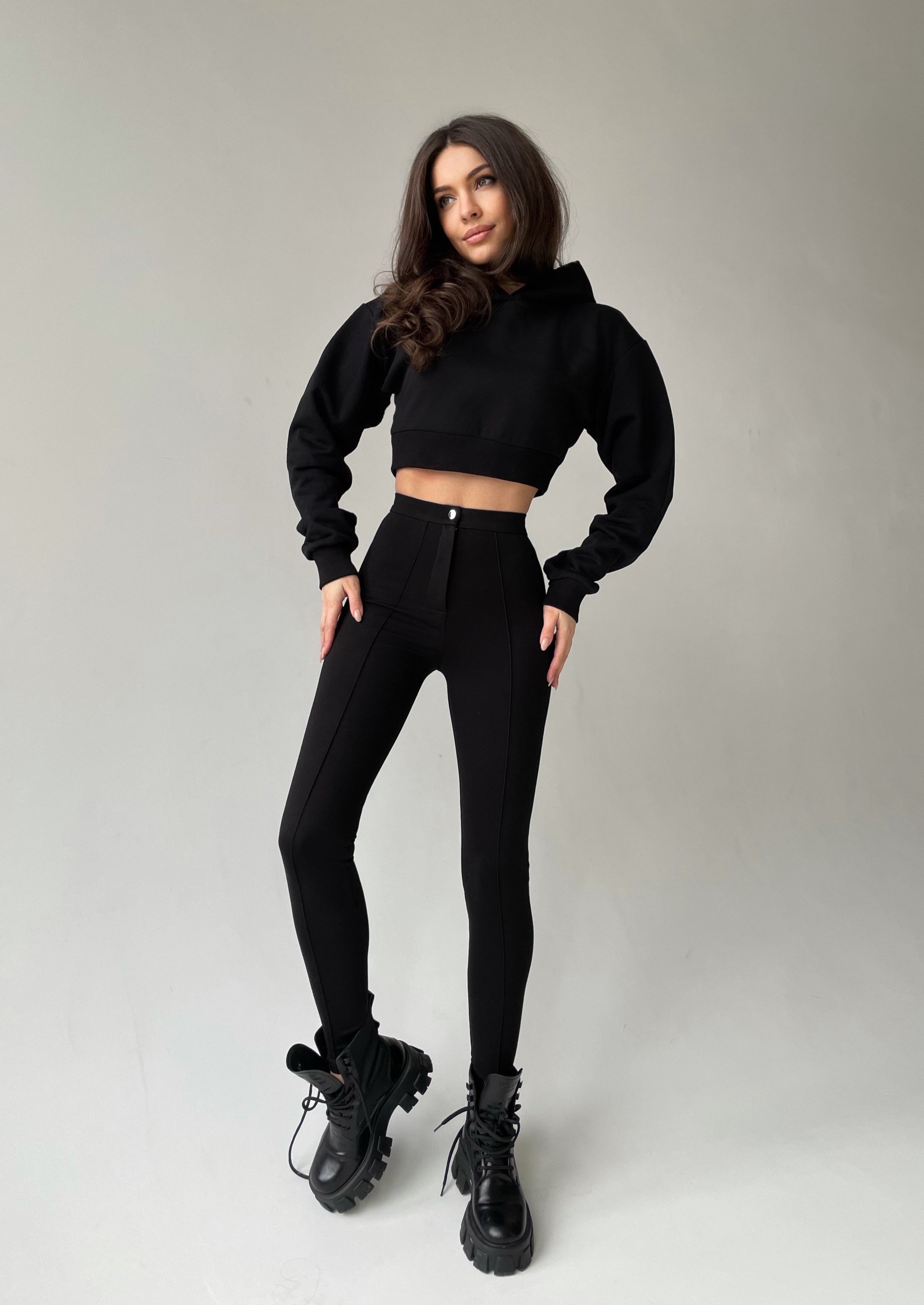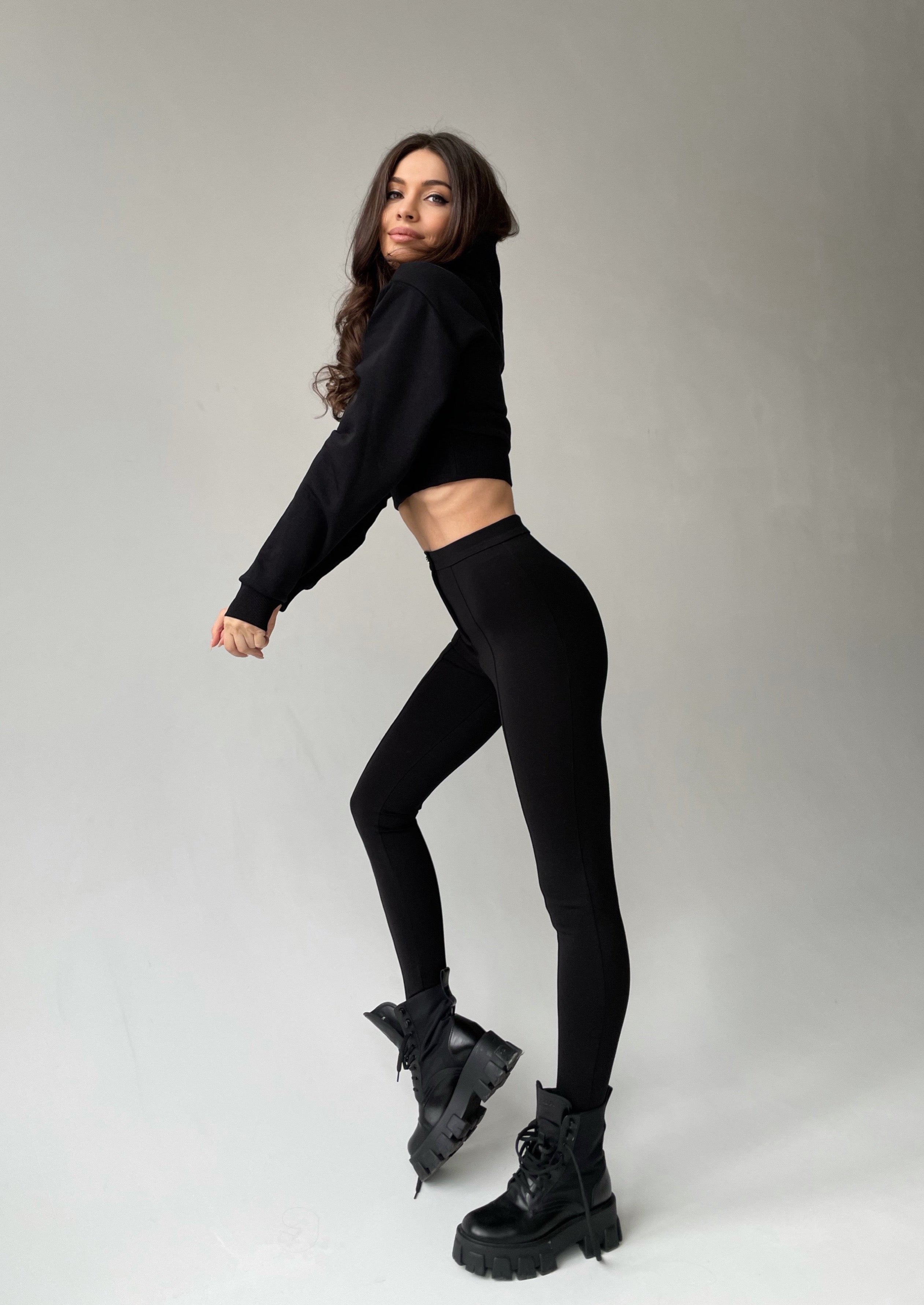 Must-have leggings are made of elastic viscose. Thanks to the high fit and front seams, your body will look even more taut and sophisticated.