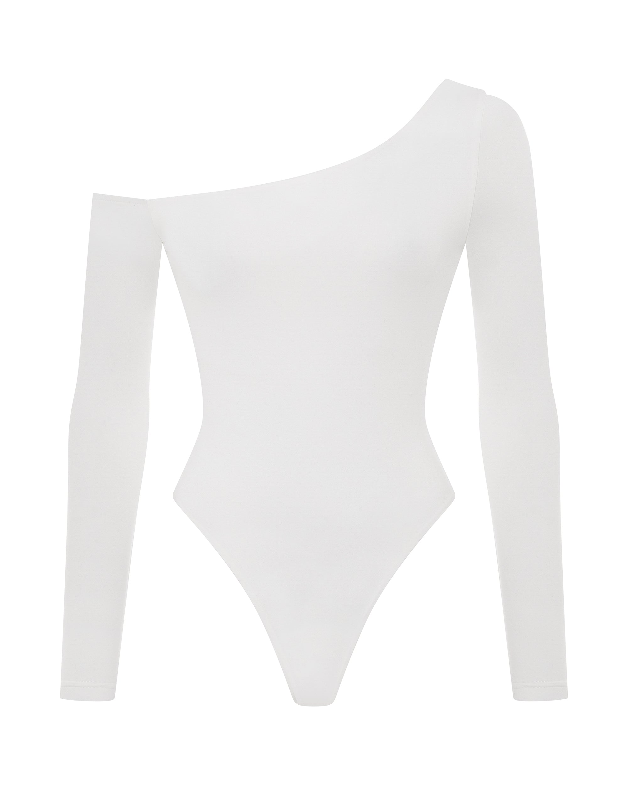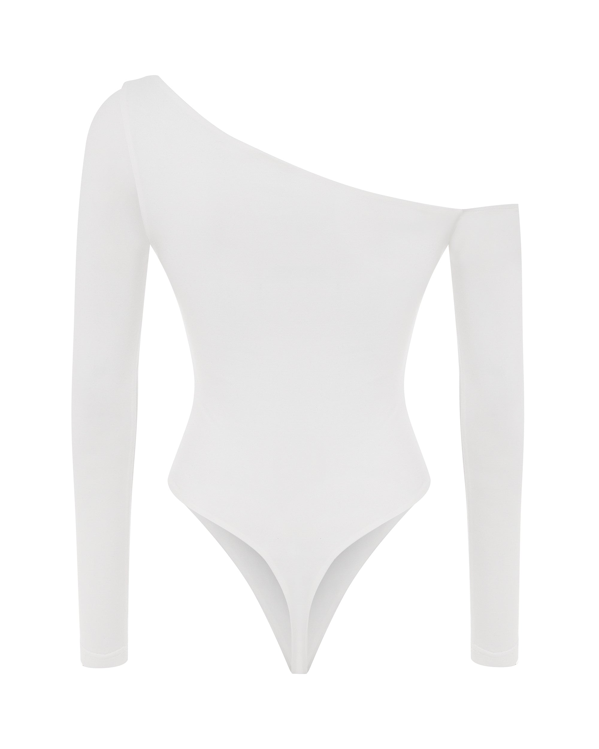 This bodysuit features a sleek design with a diagonal line starting from the shoulder, crafted from luxuriously smooth and silky viscose material. Additionally, this bodysuit boasts a double-layered construction, ensuring both coverage and durability. The softness and comfort of the fabric make it a delightful piece to wear for any occasion.